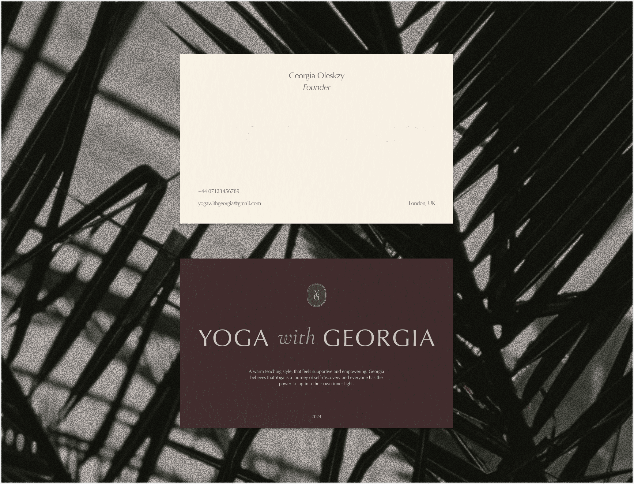 We built a warm, cosy brand that still feels elevated and elegant. The logomark combines the letters Y and G into an organic, flowing shape, echoing the softness and movement of her teaching style.